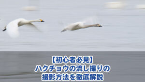 目だけで追いかけられるときは三脚がおすすめです。ハクチョウの飛び立つときはこのスピードになります。この時に被写体の速さや動きが一定のほうがより流し撮りを撮りやすいです。